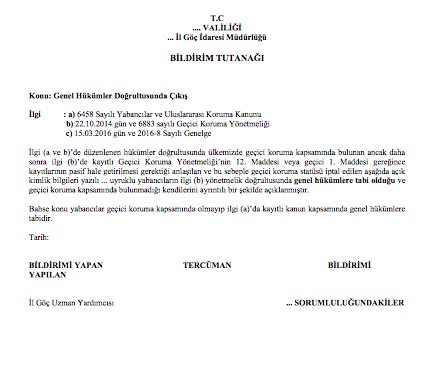Geçici Koruma Statüsünün İptali Kararı Bildirim Tutanağı