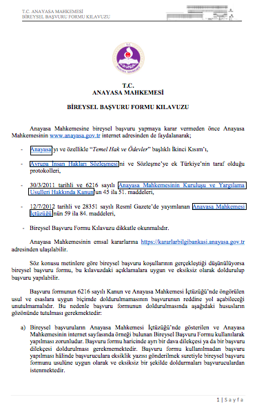 Anayasa Mahkemesi Bireysel Başvuru Formu Kılavuzu