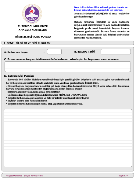 Anayasa Mahkemesi Bireysel Başvuru Formu