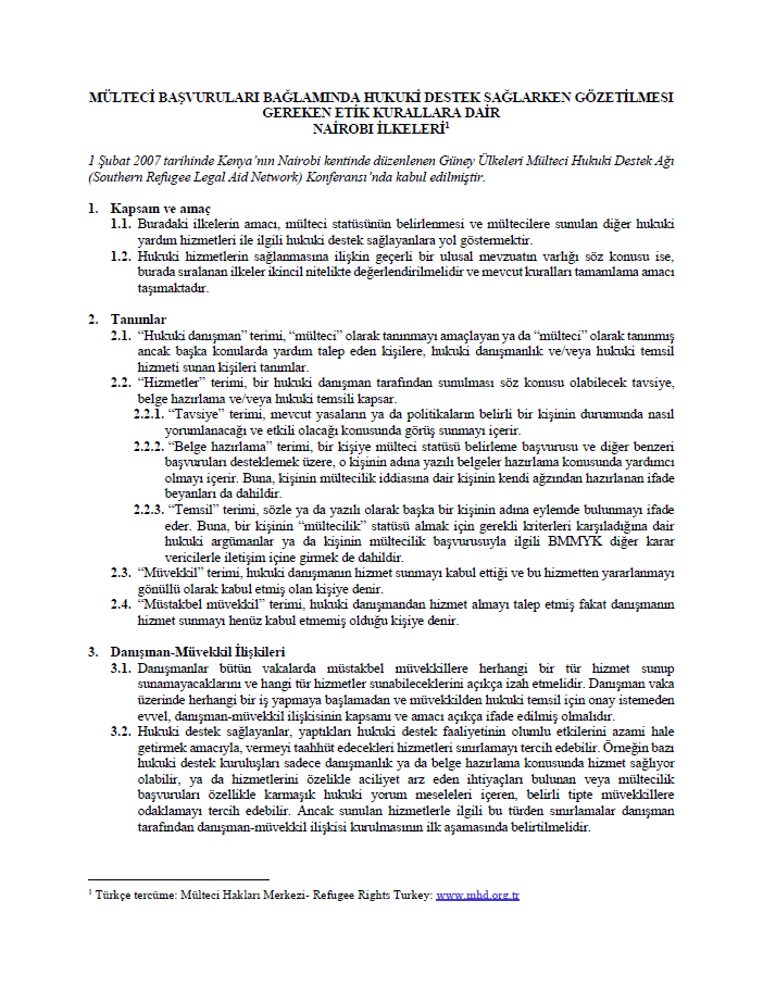 Mülteci Başvuruları Bağlamında Hukuki Destek Sağlarken Gözetilmesi Gereken Etik Kurallara Dair Nairobi İlkeleri
